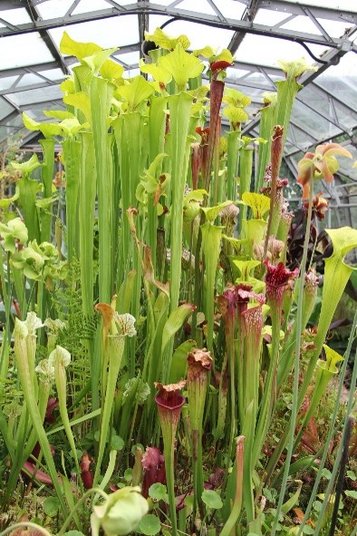 The gardens pack a lot into an area of just over 1ha (2.5 acres) and comprise lawned areas, herbaceous borders, a winter border, herb garden, bog garden, alpine beds, sub-tropical beds, Mediterranean and Antipodean beds. The glasshouses contain an evolution-themed display, a cacti collection, a fern house, Southern Hemisphere collection and a carnivorous bed.